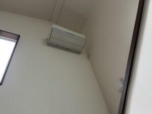 【施工前】吹き抜け階段の高所に設置された10年使用のエアコン