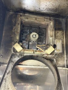 まず、最も恐ろしいのが排気ダクト火災です。劣化した換気扇が異常過熱し、こびりついた古い油に引火すると、