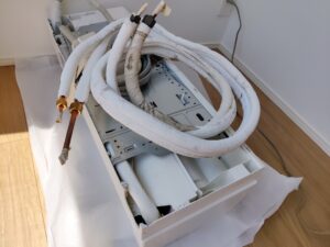 そして配管内の空気を抜く真空引き作業、最終的な動作確認までを含めて作業時間は約2時間から2時間半ほどで完了しました。